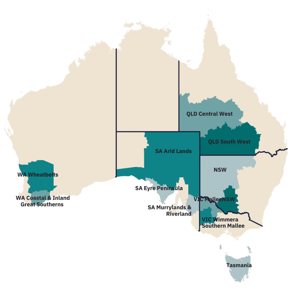 There will be a focus on regions identified as drought sensitive, with dedicated opportunities designed to suit local leaders. The map outlines the regions in the Community Impact Program and Local Government Areas (LGAs).