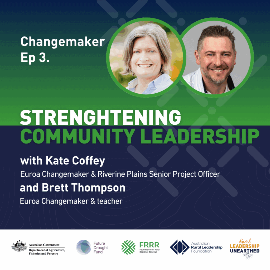 In this episode of Rural Leadership Unearthed, we’re joined by Kate Coffey and Brett Thompson. Kate is the Senior Project Manager at Riverine Plains, where she leads the organisation’s Farmer and Community Engagement activities. Brett at the time of this chat was coming to the end of his role as Executive Officer of social organisation LEAD Loddon Murray, and has just completed a Masters of Teaching which will carry him into his next chapter. As leaders, Kate and Brett are both embedded in their home communities of Yarrawonga and Bendigo (respectively) and they shared the experience of completing a Changemaker workshop in Euroa in 2024.
